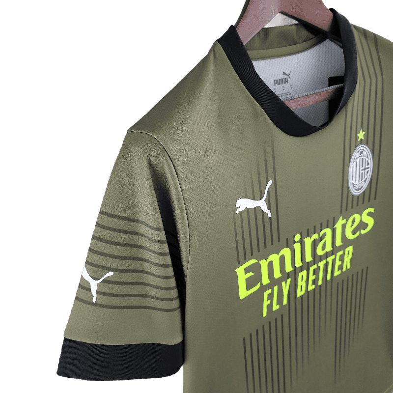 Top players like Rafael Leão, Olivier Giroud, Theo Hernández, and Sandro Tonali wore this third away jersey during the 2022/2023 season.