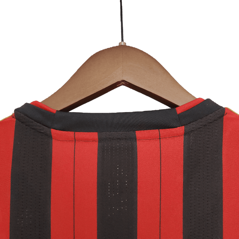 The AC Milan 2013/2014 Home Jersey showcases the club’s iconic red and black stripes in a sleek modern design. Featuring gold accents and a refined collar, this jersey was worn during a season of transition for the Rossoneri as they competed in Serie A and European tournaments. A perfect blend of tradition and contemporary style, this retro kit remains a fan favorite.