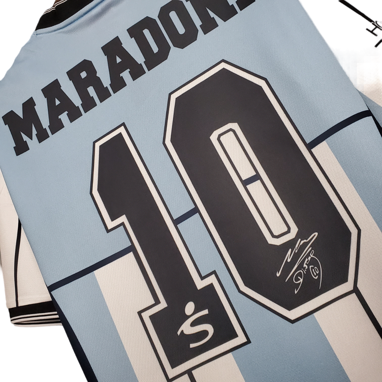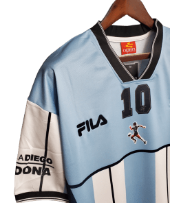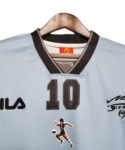 The Argentina 2001 Retro Maradona #10 Commemorative Edition Jersey is a special tribute to one of football’s greatest icons, Diego Maradona. Worn during his farewell match in 2001, this jersey celebrates the legacy of the man who brought Argentina to the pinnacle of world football. Featuring the classic sky blue and white stripes with Maradona’s iconic number 10, this piece is a must-have for any true Argentina fan.