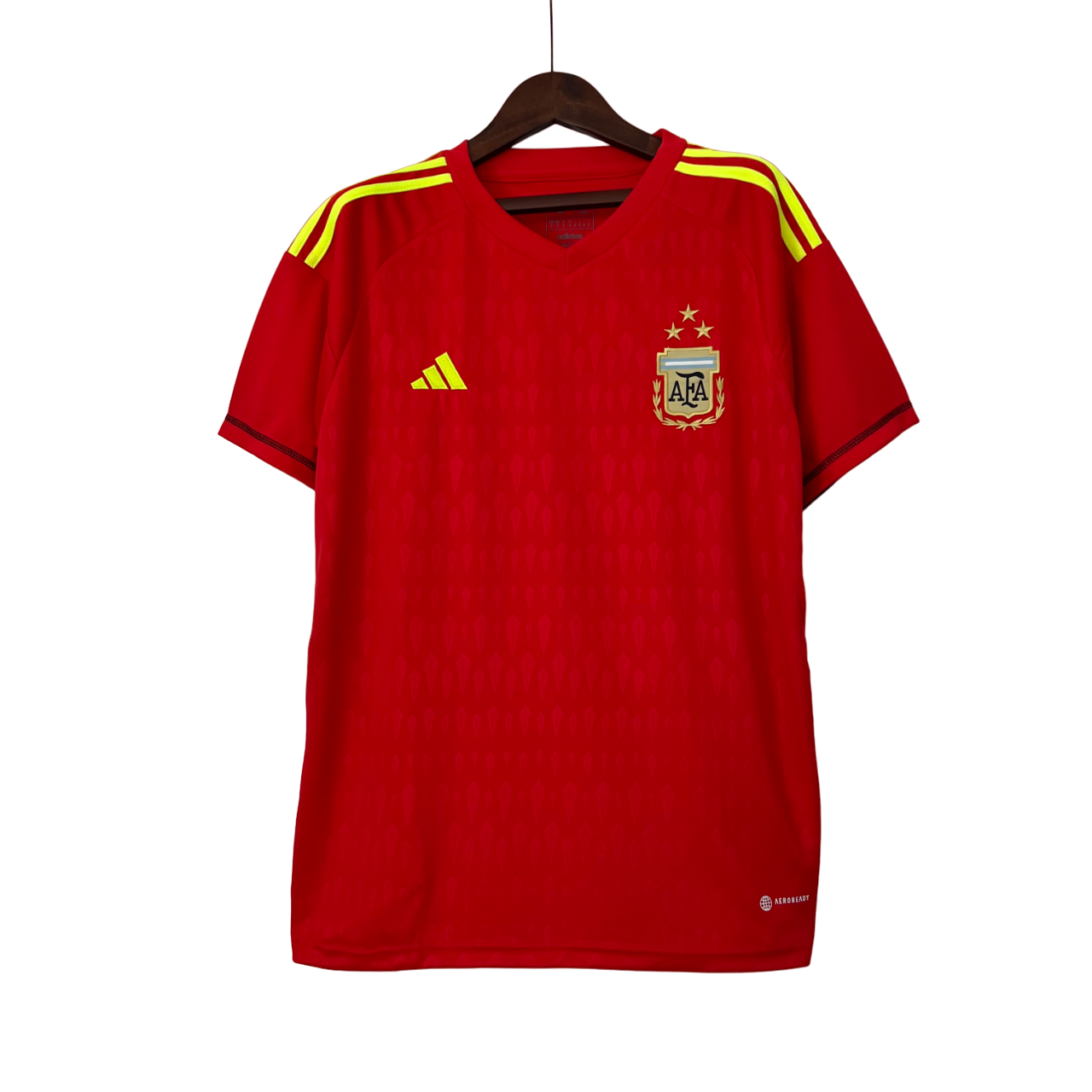 The Argentina 2023 Retro Goalkeeper Jersey in red is a bold tribute to the fearless keepers who have defended La Albiceleste’s goal. With a striking red design inspired by past classics, this jersey blends vintage aesthetics with modern comfort. Lightweight and breathable, it’s perfect for match days, training, or casual wear.