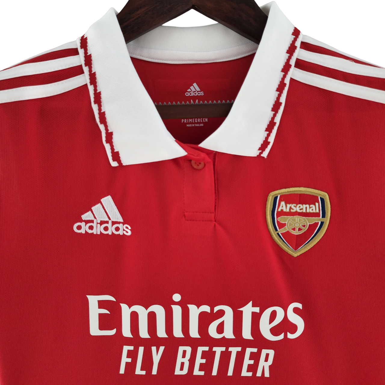 The Arsenal 2022/2023 Women’s Home Jersey brings a fresh take on the club’s iconic red and white design while honoring its rich history. Worn during an exciting season of domestic and European competition, this jersey blends tradition with a contemporary look, making it a must-have for every Arsenal fan.