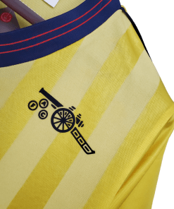 The Arsenal 1983/1986 Away Jersey is a standout piece of the club’s history, featuring the iconic yellow body with navy sleeves and trim. This classic design was worn during a defining period for the Gunners, as they continued to build towards future success in English football.