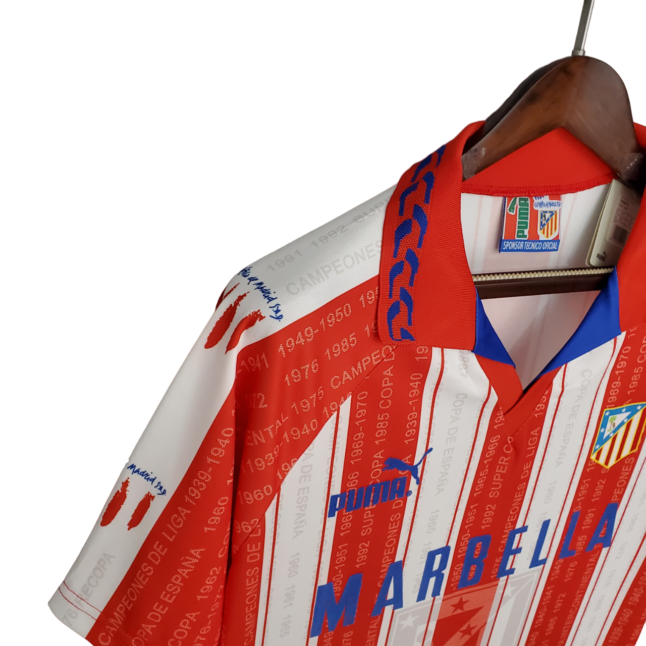 Atlético Madrid legends like Kiko, Milinko Pantić, and Diego Simeone wore this jersey as they led the club to victory in La Liga and the Copa del Rey, securing an iconic double.