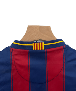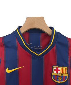 The Barcelona 2009/2010 Kids Home jersey represents one of the most dominant eras in football history. Featuring the classic Blaugrana stripes with a bold yellow collar, this jersey was worn during a season where Barça continued their reign as one of Europe’s most unstoppable teams. Made from lightweight, breathable fabric, it ensures young fans stay comfortable while proudly supporting their favorite club.
