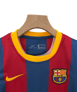 The Barcelona 2010/2011 Kids Home jersey is a symbol of one of the greatest seasons in football history. Featuring the club’s iconic Blaugrana stripes with a bold yellow collar, this jersey represents the era when Barça dominated European and domestic football. Made from lightweight, breathable fabric, it ensures young fans stay comfortable while showcasing their passion for the club.