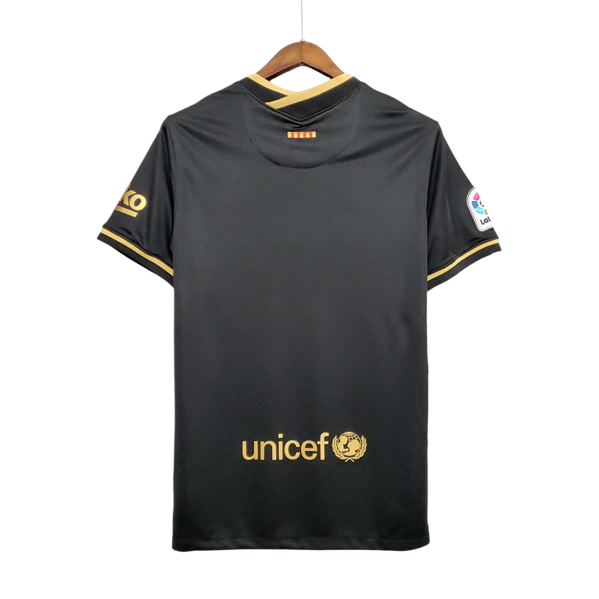 The Barcelona 2020/2021 Away jersey delivers a bold and stylish design, featuring a sleek black colorway with striking gold accents. Representing confidence and dominance, this jersey was a fan favorite during the season. Crafted with lightweight, breathable fabric, it ensures maximum comfort whether you’re cheering from the stands, playing on the field, or wearing it casually.