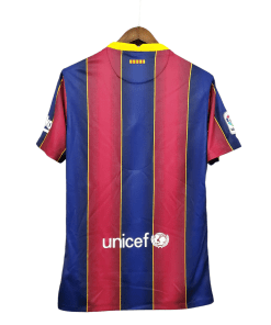 The Barcelona 2020/2021 Home jersey brings back the club’s traditional blue and red stripes with a design inspired by past successes. Featuring a refined look with gold accents, this jersey pays homage to Barça’s rich history while embracing modern performance features. Crafted with lightweight, breathable fabric, it ensures all-day comfort whether you’re in the stands, on the pitch, or wearing it casually.