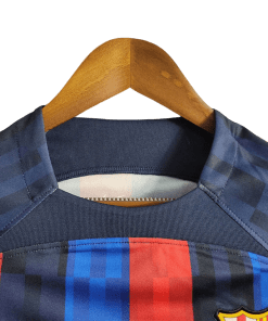 The Barcelona 2022/2023 x Peso Pluma Edition jersey is a unique collaboration celebrating the fusion of global football and Latin music culture. Inspired by the rising Mexican artist Peso Pluma, this jersey features a bold design that blends Barcelona’s iconic identity with a fresh, modern twist. Crafted with lightweight, breathable fabric, it ensures style and comfort whether you’re cheering for Barça or representing your passion for music.