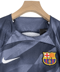 The Barcelona 2023/2024 Kids Goalkeeper Black jersey is designed for young shot-stoppers who want to stand tall like their favorite Barça keepers. Featuring a sleek black design with high-performance fabric, this jersey ensures comfort, breathability, and flexibility—perfect for making game-winning saves. Whether worn on the pitch or as casual wear, this jersey lets kids showcase their passion for goalkeeping and the Blaugrana spirit.