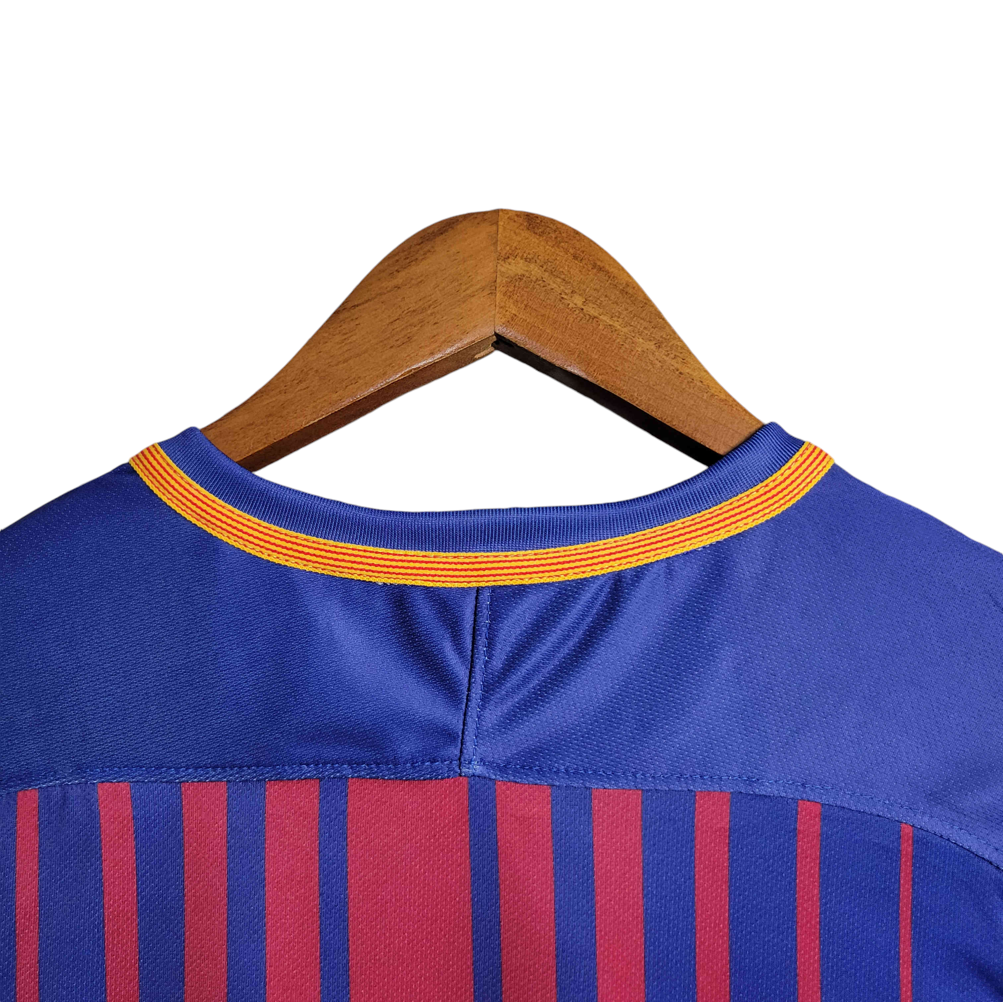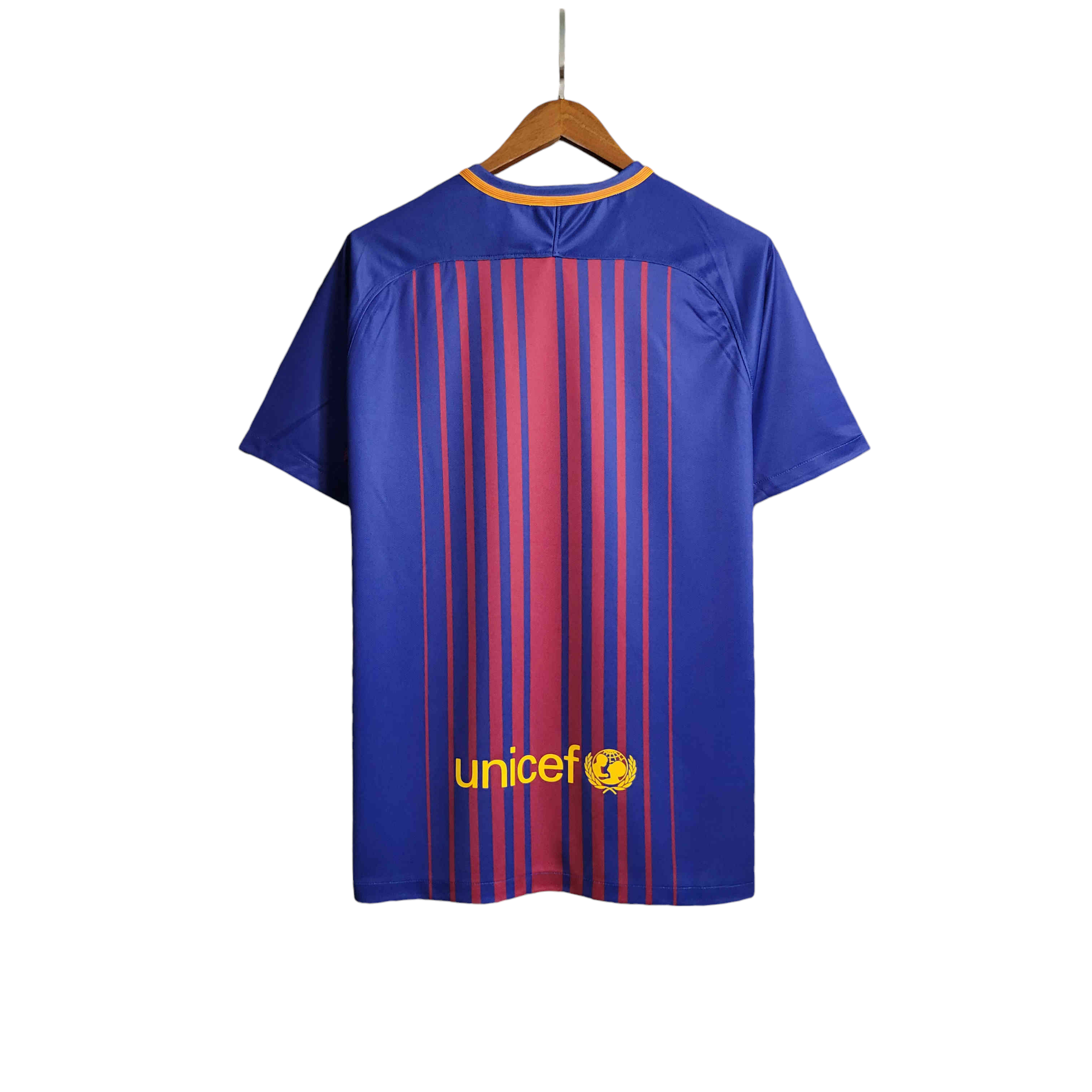 The Barcelona Retro 2017/2018 Home Jersey brings back the classic Blaugrana design worn during a dominant campaign in Spanish football. Featuring a fresh take on the traditional vertical stripes, this jersey represents the season when Barça lifted both La Liga and the Copa del Rey. A must-have for fans who appreciate recent club history and outstanding performances.