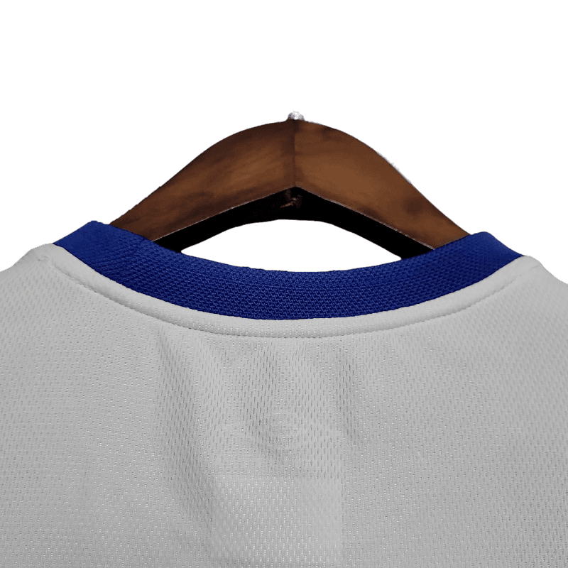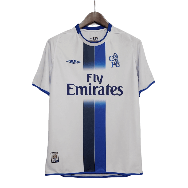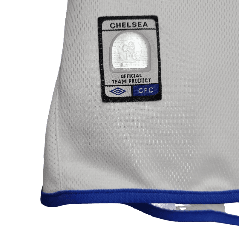 The Chelsea 2003/2005 Retro Away Jersey is a symbol of the club’s transformation into a dominant force in English football. Featuring a sleek white design with blue accents, this jersey was worn during a defining period that saw Chelsea lift their first Premier League title in 50 years.
