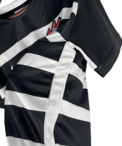 The Corinthians 2015/2016 Away jersey is a tribute to one of the club’s most dominant seasons in history. Featuring the iconic black design with bold white vertical stripes, this jersey represents the relentless spirit of the Timão during their triumphant 2015 Brasileirão campaign. Crafted for both comfort and style, it’s a must-have for fans who want to relive the club’s golden moments.