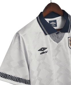 The England 1990 Home Jersey is one of the most beloved kits in Three Lions history, featuring a clean white design with subtle navy and light blue accents. Worn during the unforgettable 1990 FIFA World Cup in Italy, this jersey symbolizes one of England’s greatest tournament runs, filled with passion, drama, and iconic moments.