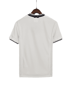 The England 2000 Home Jersey is a standout piece from the turn of the millennium, featuring a sleek white design with bold navy and red accents. Worn during UEFA Euro 2000, this jersey represents a period of transition for the Three Lions as they competed on the European stage with a squad full of promising talent and experienced leaders.