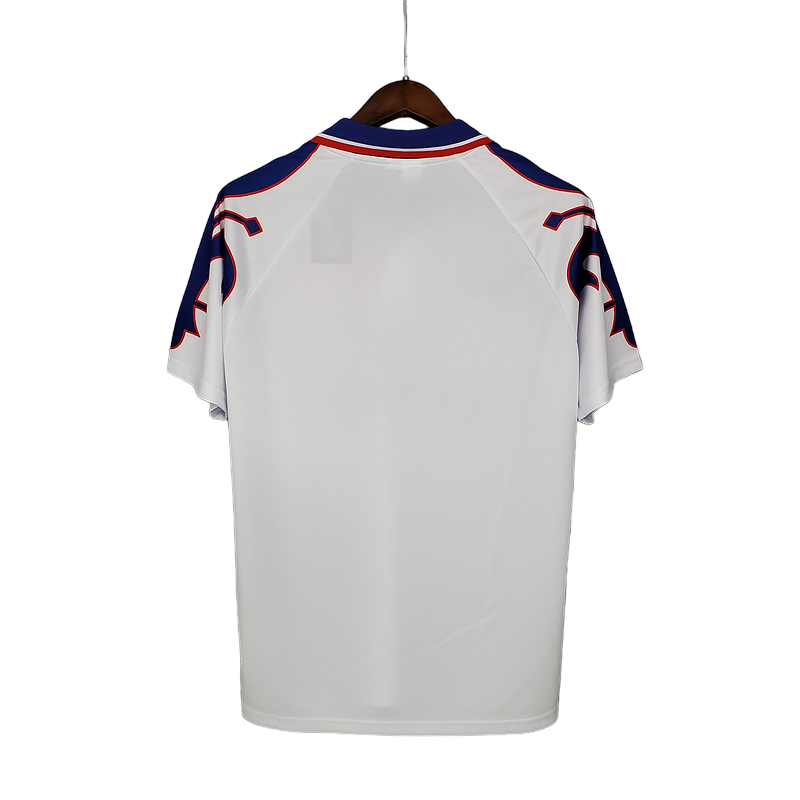 The Fiorentina 1995/1996 Away Jersey is one of the most unforgettable designs in football history, featuring a bold white base with striking purple and red details. This jersey became legendary as Fiorentina dominated in both Serie A and the Coppa Italia, cementing their place among Italy’s elite clubs.