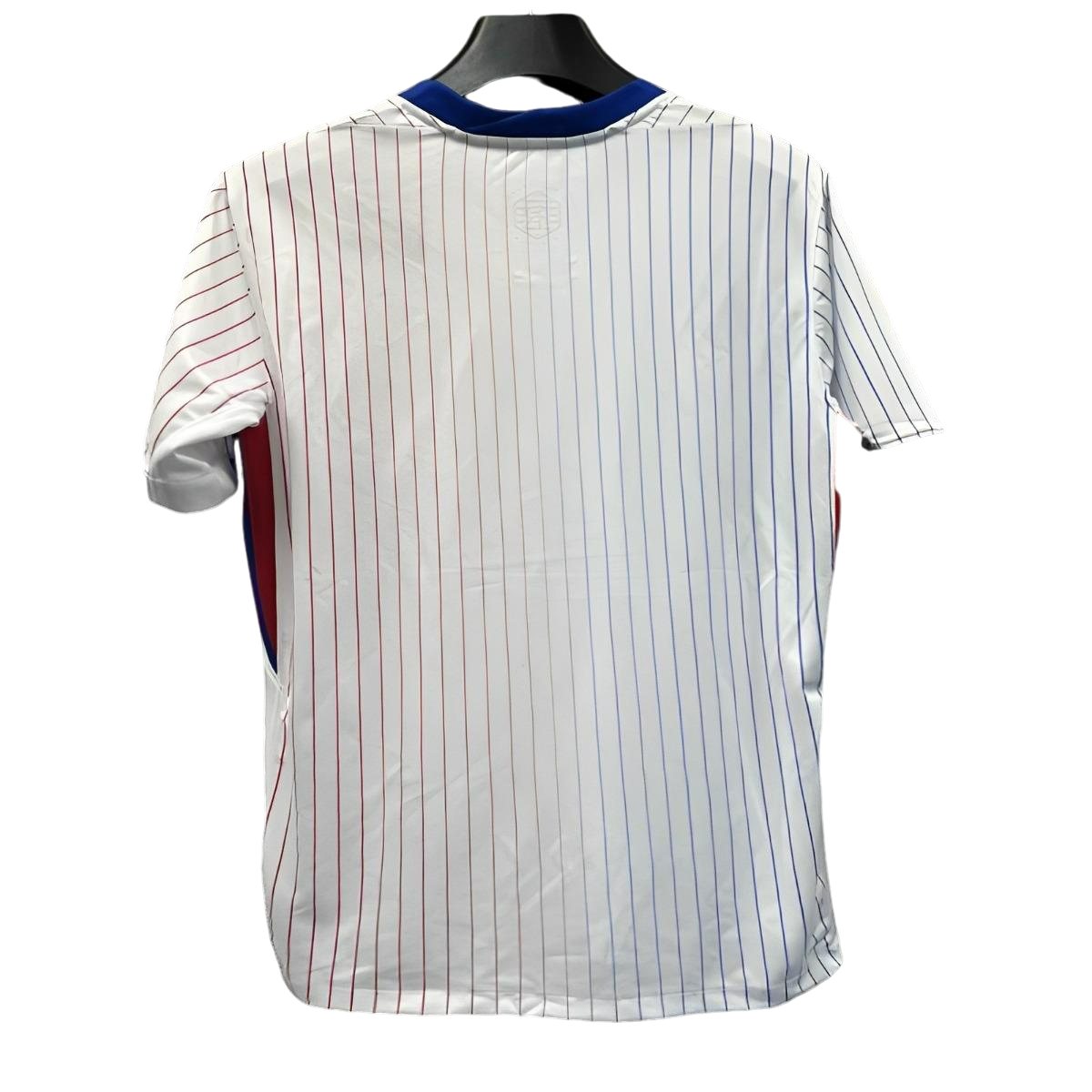 The France 2024 Away Jersey offers a fresh take on a classic design, featuring a clean white base with striking blue and red accents. Worn by Les Bleus as they compete in UEFA Euro 2024, this jersey represents France’s elegance, skill, and determination on the international stage. Designed for both comfort and performance, it’s the perfect choice for dedicated fans.