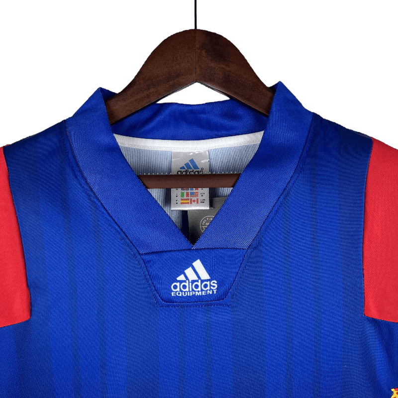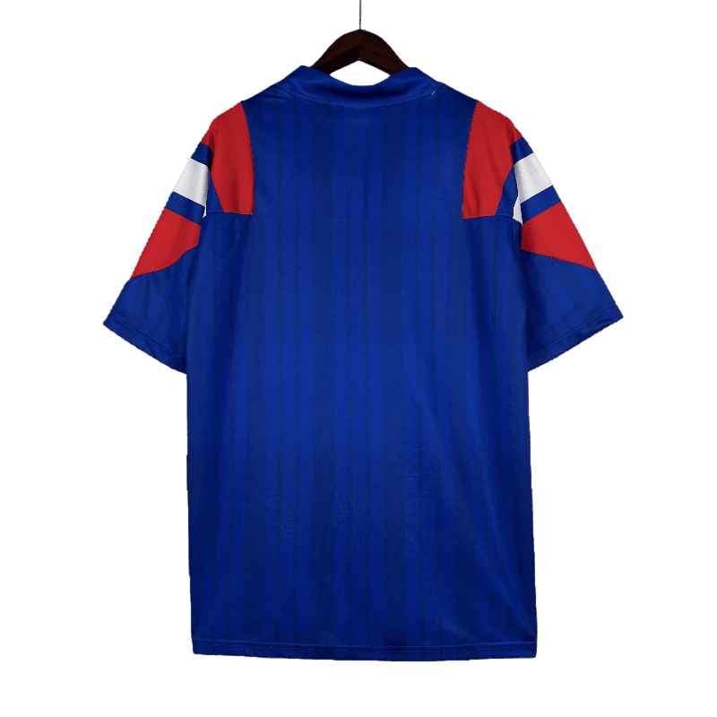 The France 1992/1994 Home Jersey is a true retro masterpiece, featuring the iconic deep blue base with bold red and white vertical stripes down the center. Worn during UEFA Euro 1992 and the early stages of the 1994 World Cup qualifiers, this jersey represents a transitional period for Les Bleus as they built towards future success.