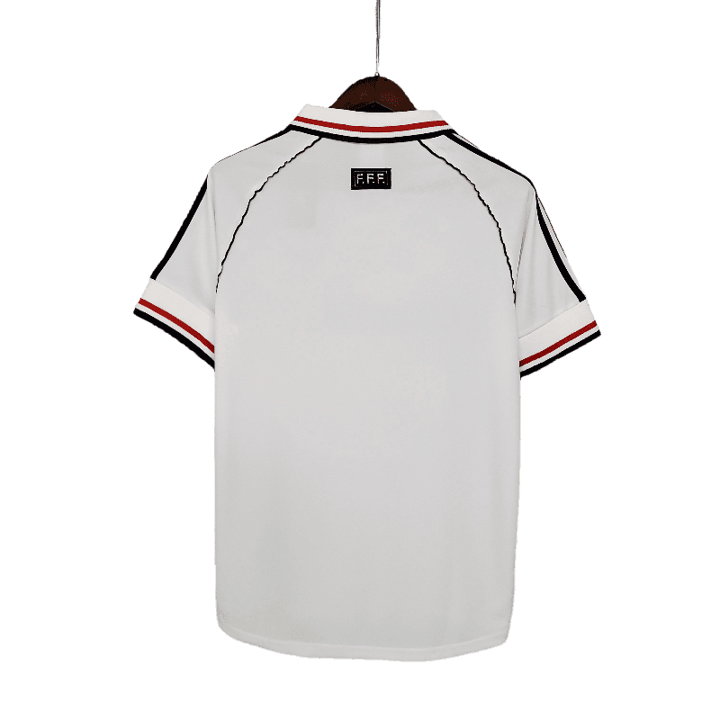 The France 1998 Away Jersey is a symbol of Les Bleus’ legendary World Cup triumph. Featuring a clean white base with bold blue and red accents, this jersey was worn by France during their victorious FIFA World Cup campaign on home soil. With its timeless design and connection to one of football’s greatest moments, this retro jersey is a must-have for any fan.