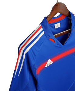 The France 2004 Home Jersey is a stunning tribute to Les Bleus’ dominance in the early 2000s. Featuring the traditional deep blue base with red and white accents, this jersey was worn during UEFA Euro 2004 as France aimed to defend their European crown. Designed with a sleek and stylish look, it captures the essence of one of France’s most talented squads.