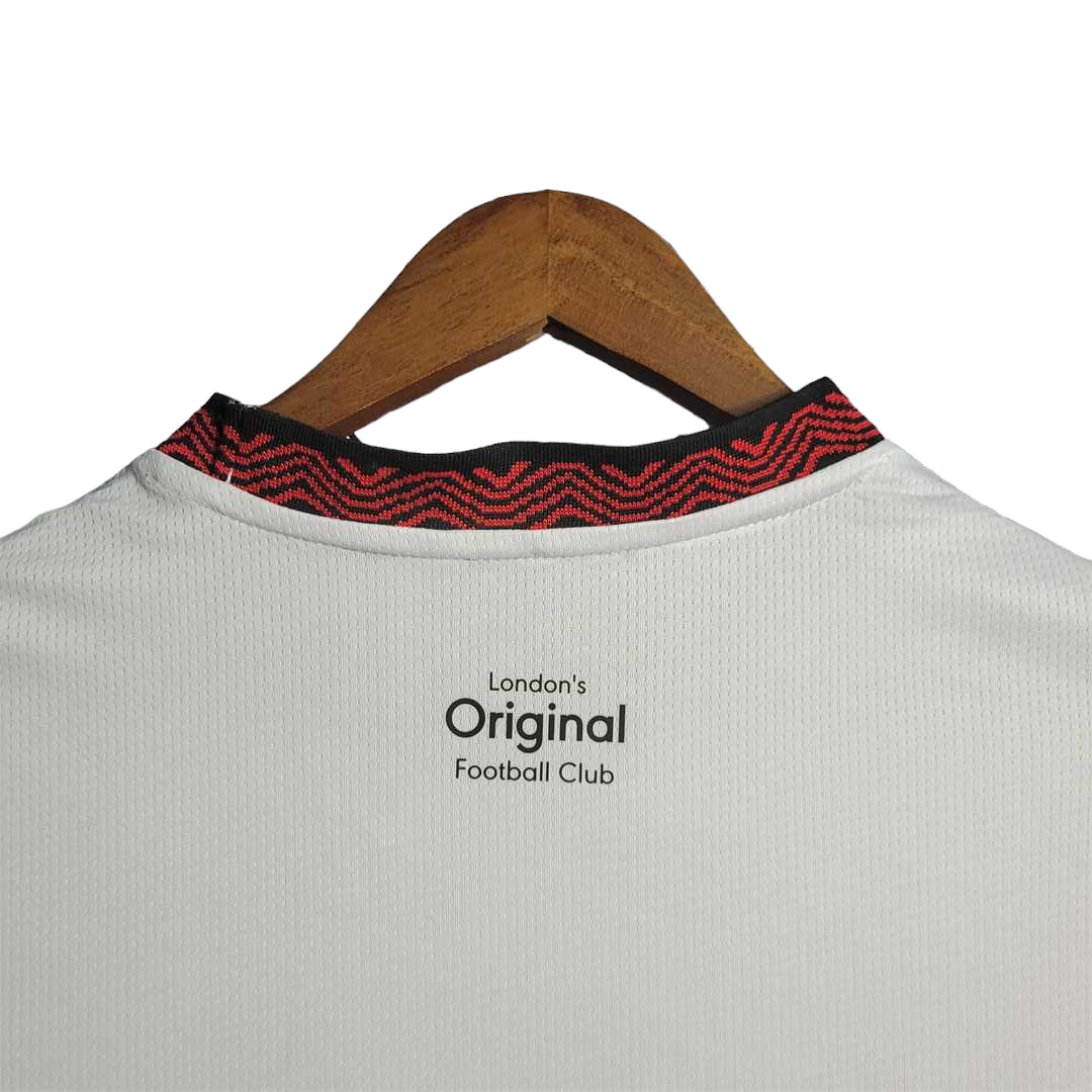 The Fulham 2023/2024 Home Jersey stays true to the club’s iconic style, featuring a crisp white base with bold black and red accents. Designed for both comfort and performance, this jersey reflects Fulham’s rich footballing heritage as they compete in the Premier League. Whether you’re cheering from Craven Cottage or watching from afar, this jersey is the perfect way to show your support.
