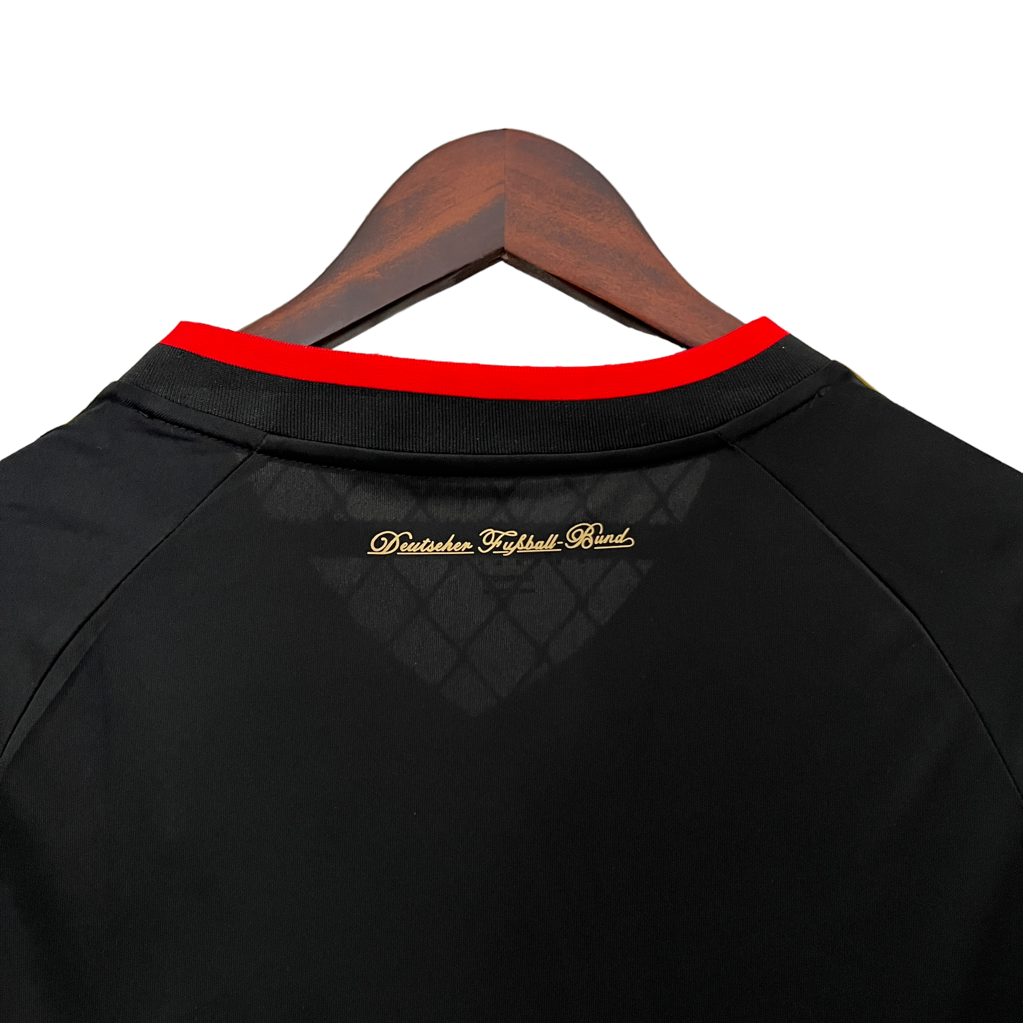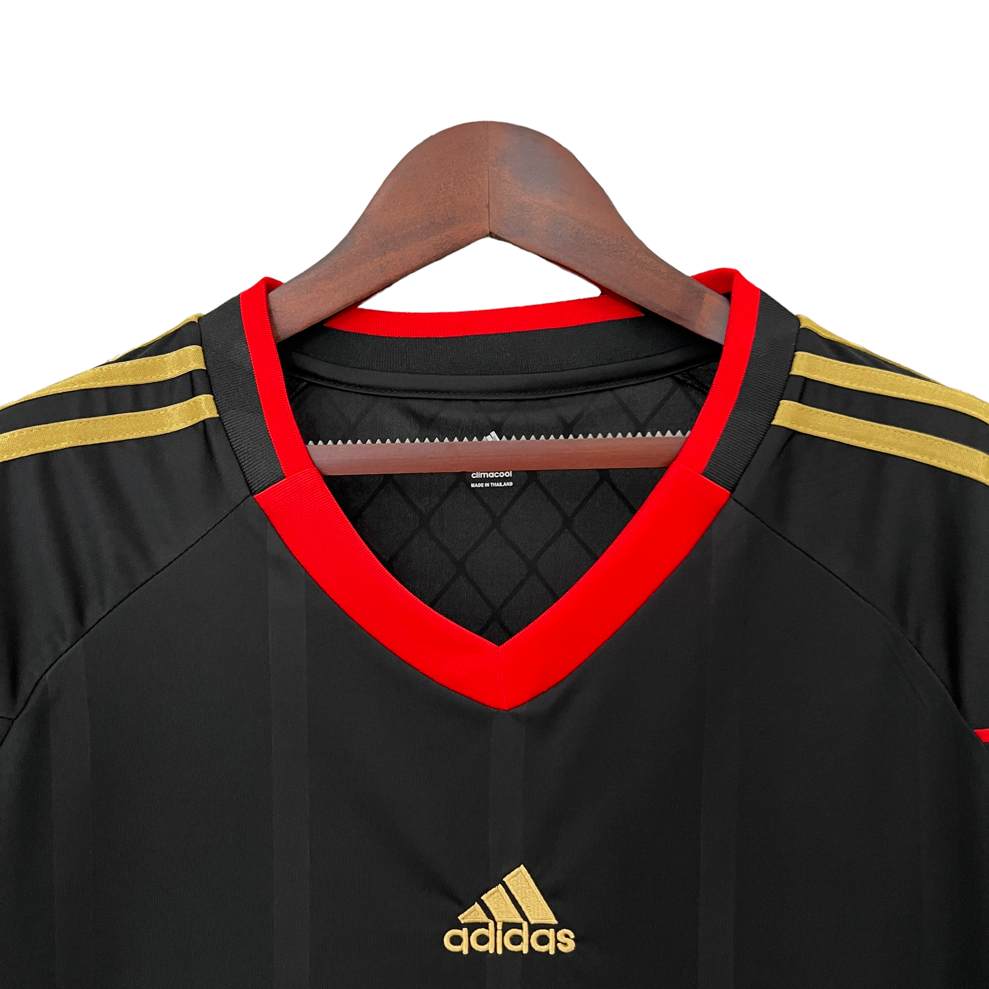 The Germany 2010 Retro Away jersey features a bold black design with gold and red accents, reflecting the national colors and the team’s emerging dominance on the world stage. Worn during the FIFA World Cup 2010 in South Africa, this jersey symbolizes the exciting era of attacking football that saw Germany reach the semi-finals.