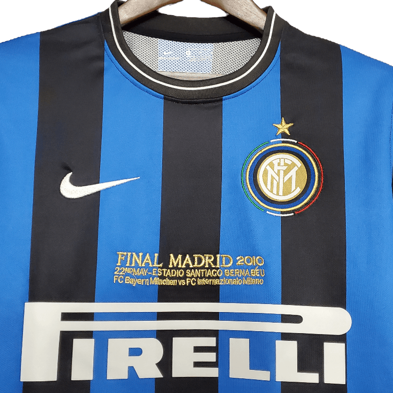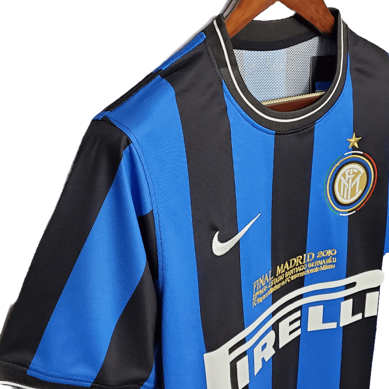 The Inter Milan 2010 Retro Home Jersey brings back the iconic black and blue stripes worn during the club’s most historic season. This jersey represents the unforgettable 2009/2010 campaign when Inter Milan achieved an unprecedented treble, conquering Serie A, the Coppa Italia, and the UEFA Champions League.