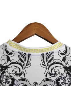 The Italy 2023/2024 x Versace White Jersey is a unique fusion of high fashion and football tradition. Featuring an elegant white design with luxurious gold detailing, this jersey embodies the sophistication of Italian style while representing the passion of the Azzurri on the global stage.