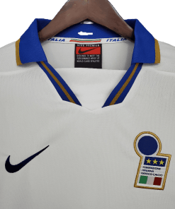 The Italy Retro 1996 Away Jersey brings back the sleek and elegant white design worn during the Azzurri’s UEFA Euro 1996 campaign. Featuring a traditional look with blue and gold accents, this jersey reflects the class and heritage of Italian football.