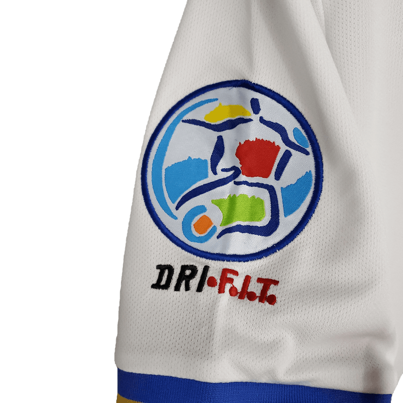 The Italy Retro 1996 Away Jersey brings back the sleek and elegant white design worn during the Azzurri’s UEFA Euro 1996 campaign. Featuring a traditional look with blue and gold accents, this jersey reflects the class and heritage of Italian football.