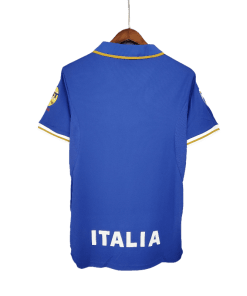 The Italy Retro 1996 Home Jersey revives the legendary deep blue design worn during the Azzurri’s campaign in UEFA Euro 1996. With its clean aesthetic, classic collar, and gold accents, this jersey embodies the elegance and tradition of Italian football.