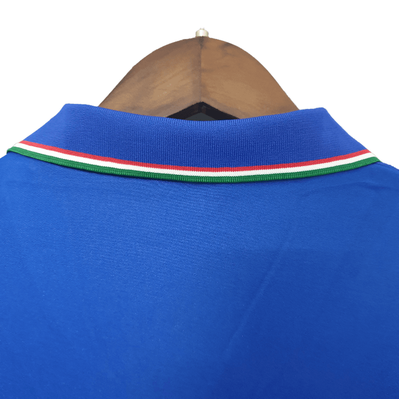 The Italy Retro 1990 Home Jersey brings back the timeless blue design worn during the unforgettable 1990 FIFA World Cup, hosted on home soil. With a sleek collar and subtle details, this jersey is a must-have for Azzurri fans looking to relive one of the most iconic tournaments in Italian football history.