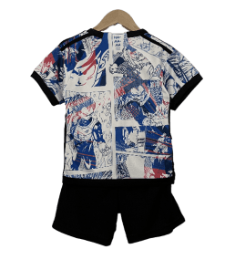 The Japan x Dragon Ball Comics 2023 Kids Jersey brings together the excitement of football and the legendary world of Dragon Ball. Featuring a vibrant design inspired by the iconic anime, this jersey is a must-have for young fans who love both the Samurai Blue and the adventures of Goku and his friends.