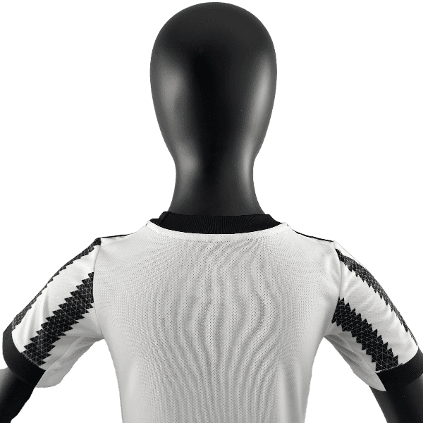 The Juventus 2022 Kids Home Jersey features the club’s legendary black and white stripes, symbolizing its rich history and dominance in Italian football. Designed for comfort and style, this jersey allows young fans to represent their favorite team with pride.