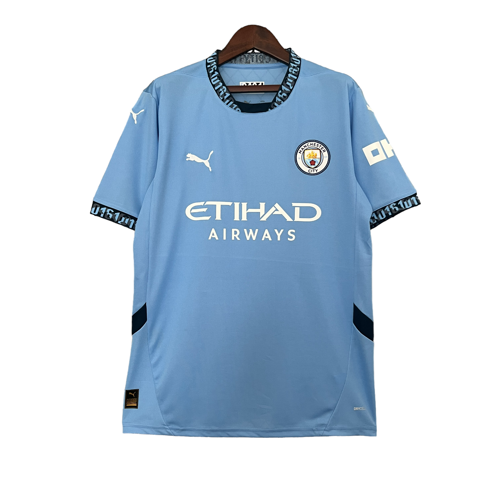 Worn by Manchester City’s elite squad, including stars like Erling Haaland, Kevin De Bruyne, and Phil Foden, this jersey is showcased during home matches at the Etihad Stadium throughout the 2024/2025 season.