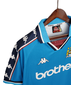 A must-have for Manchester City supporters, this jersey is a reminder of the club’s resilience and loyal fanbase. Whether you’re reminiscing about the late 1990s or adding a historic piece to your collection, this retro jersey is a timeless classic.