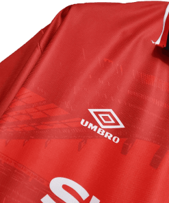 This jersey is a must-have for any Manchester United fan, representing a golden era of success and legendary players. Whether you’re a collector or looking to relive the unforgettable moments of the ‘90s, this retro home kit is a timeless piece of football history.
