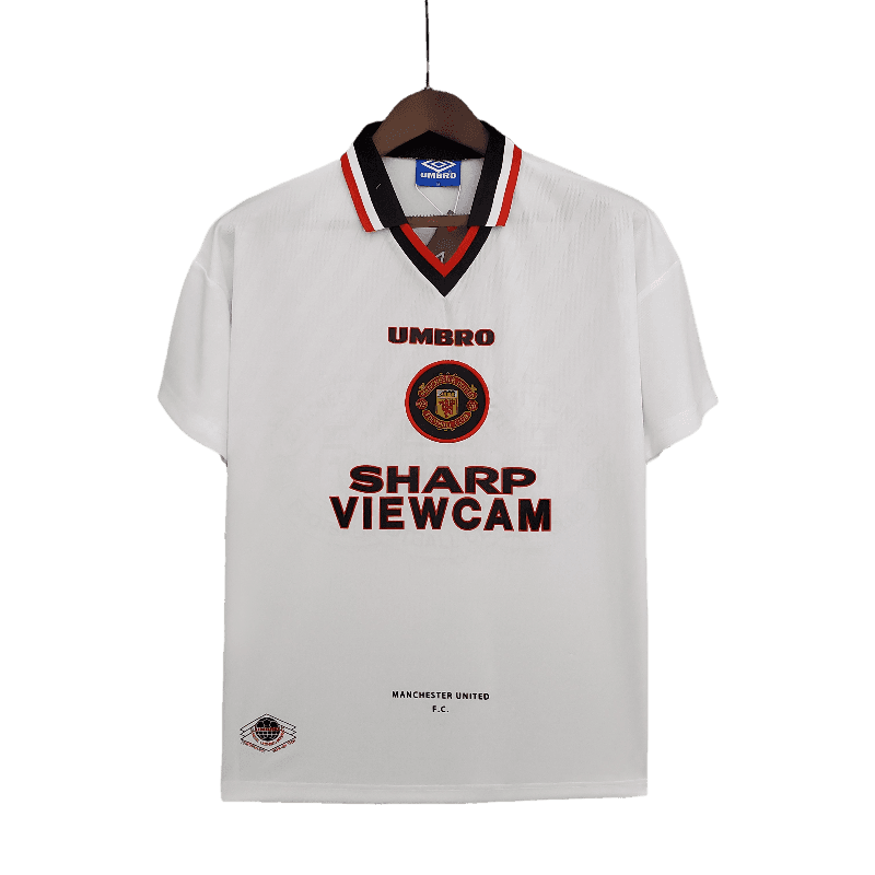 Eric Cantona, David Beckham, Ryan Giggs, and Roy Keane wore this jersey as Manchester United defended their Premier League title and battled in the UEFA Champions League.