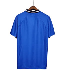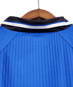 The Manchester United 1996/1997 Retro Third jersey is one of the club’s most eye-catching kits. Featuring a bold royal blue design with black and yellow accents, this jersey was worn during key away matches as the Red Devils competed for Premier League and Champions League success. This unique design remains a fan favorite and a standout piece in United’s kit history.