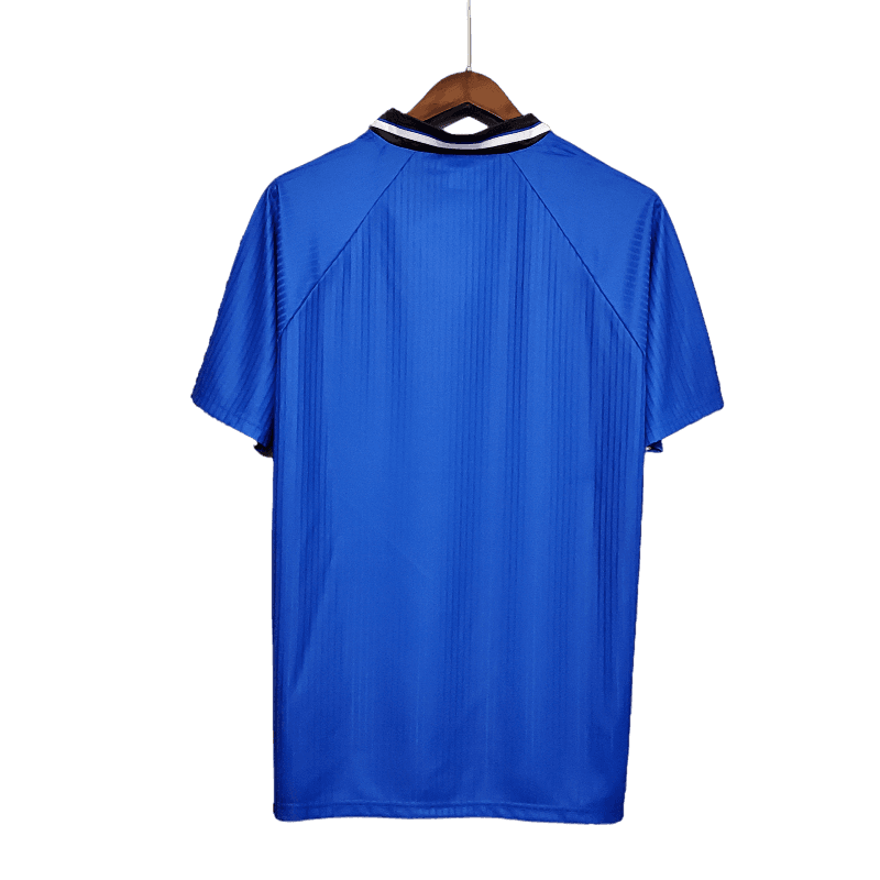 The Manchester United 1996/1997 Retro Third jersey is one of the club’s most eye-catching kits. Featuring a bold royal blue design with black and yellow accents, this jersey was worn during key away matches as the Red Devils competed for Premier League and Champions League success. This unique design remains a fan favorite and a standout piece in United’s kit history.