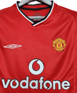 The Manchester United 2000/2001 Retro Home jersey is a true classic from a season that saw the Red Devils cement their dominance in English football. Featuring the club’s signature red design with black and white accents, this jersey was worn as United secured their third consecutive Premier League title under Sir Alex Ferguson.