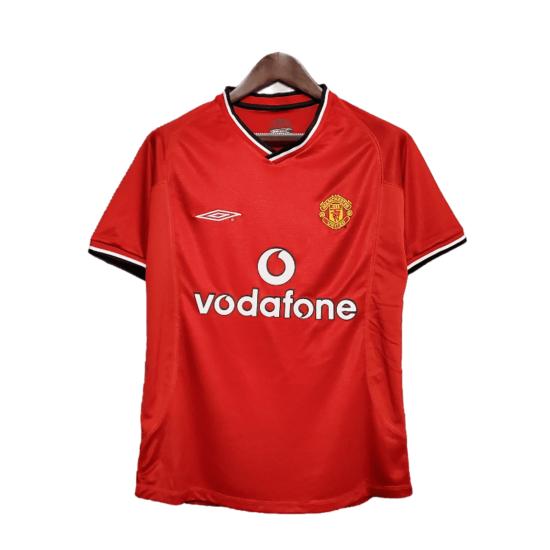The Manchester United 2000/2001 Retro Home jersey is a true classic from a season that saw the Red Devils cement their dominance in English football. Featuring the club’s signature red design with black and white accents, this jersey was worn as United secured their third consecutive Premier League title under Sir Alex Ferguson.