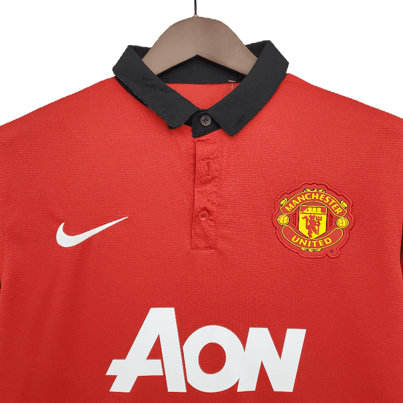 The Manchester United 2013/2014 Retro Home jersey is a standout design from a season that marked the beginning of a new era. Featuring the club’s traditional red color with a black button-up collar, this jersey combines a classic look with modern details. Worn during a transitional period at Old Trafford, it remains a favorite among fans who appreciate recent club history.