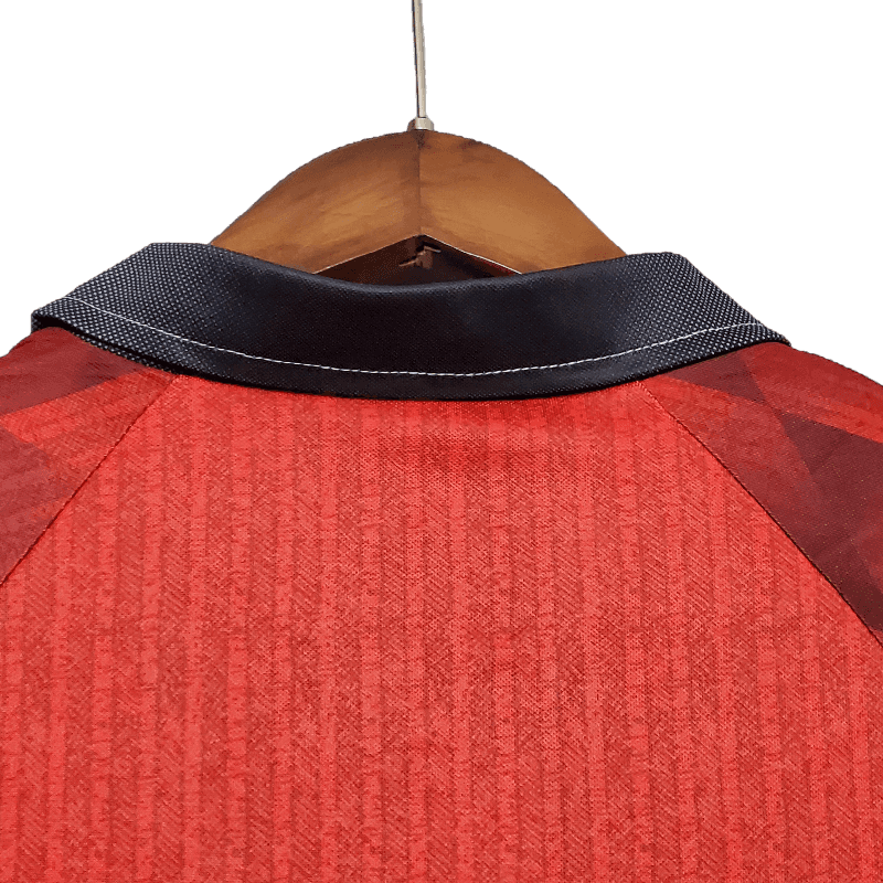 The Manchester United 1996 Retro Long Sleeve Home jersey is a legendary piece from one of the club’s most successful eras. Featuring the iconic red design with a traditional collar and black-and-white details, this jersey was worn during a season when Sir Alex Ferguson’s side dominated English football. The long sleeves add a vintage feel, perfect for dedicated fans and collectors alike.