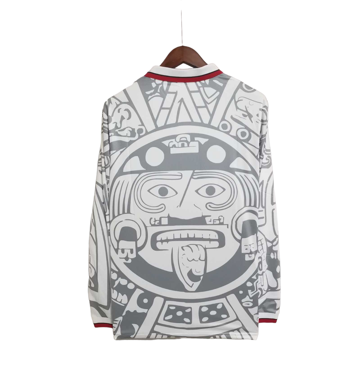 The Mexico 1998 Retro Long Sleeve Away Jersey is a true throwback to one of the most iconic kits in football history. Featuring the legendary Aztec-inspired design in white with intricate green and red details, this jersey was worn during Mexico’s memorable campaign at the 1998 FIFA World Cup in France. A symbol of national pride, it remains a fan favorite among El Tri supporters.