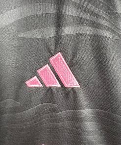 The Inter Miami 2023/2024 Women’s Away Jersey captures the essence of Miami’s vibrant waterfront with its sleek black design adorned with pink accents and an undulating graphic pattern. Crafted for comfort and performance, this jersey features moisture-absorbing AEROREADY technology, ensuring you stay cool and dry whether you’re on the field or cheering from the stands. The back neck proudly displays the team’s aspirational motto, “Freedom to Dream,” reflecting the club’s ambitious spirit.
