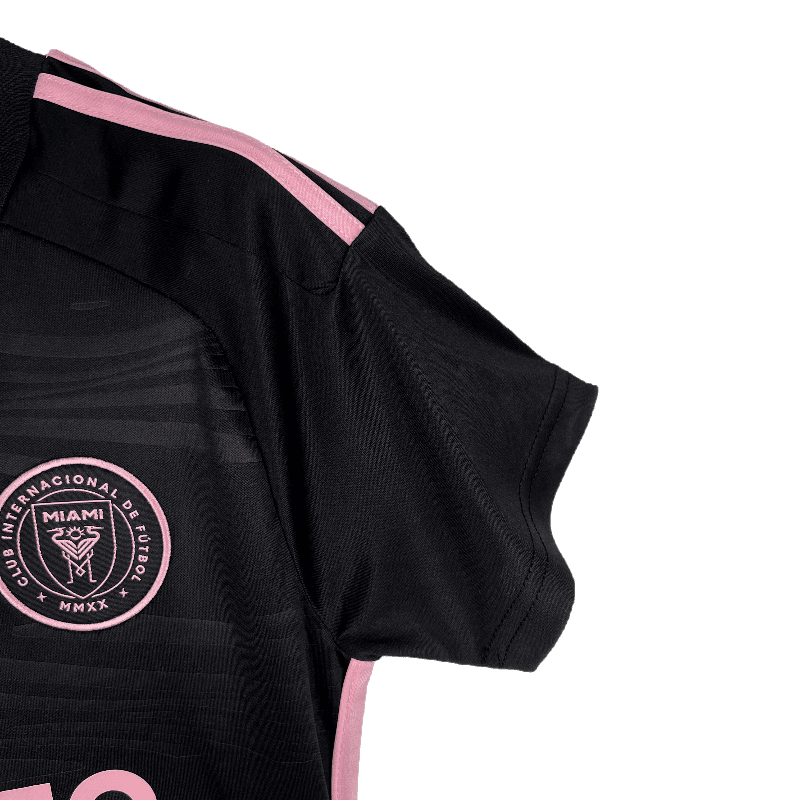 The Inter Miami 2023/2024 Women’s Away Jersey captures the essence of Miami’s vibrant waterfront with its sleek black design adorned with pink accents and an undulating graphic pattern. Crafted for comfort and performance, this jersey features moisture-absorbing AEROREADY technology, ensuring you stay cool and dry whether you’re on the field or cheering from the stands. The back neck proudly displays the team’s aspirational motto, “Freedom to Dream,” reflecting the club’s ambitious spirit.