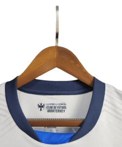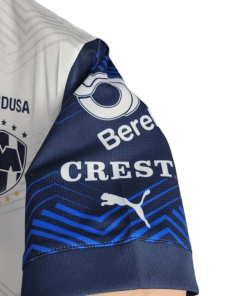 The Monterrey 2024/2025 Away Jersey features a sleek white base with striking horizontal patterns and bold navy accents, reflecting the club’s modern style and rich heritage. Designed for both performance and comfort, this jersey is perfect for fans supporting Los Rayados during their Liga MX and CONCACAF Champions Cup campaigns.