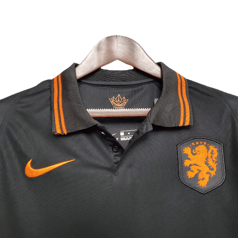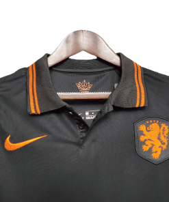 The Netherlands 2020 Away Jersey features a bold black design with striking orange accents, symbolizing strength and determination. Worn during the UEFA Nations League and the Euro 2020 campaign, this jersey represents a new era of Dutch football, blending tradition with a sleek, modern look.