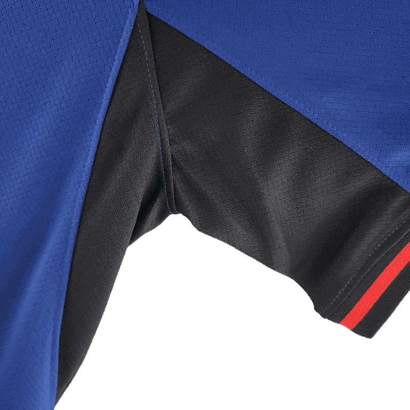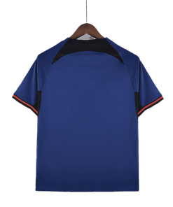 The Netherlands 2022 Away Jersey is a sleek and modern design, featuring a deep blue color with striking orange accents that reflect the nation’s proud footballing heritage. This jersey was worn during the FIFA World Cup 2022 as the Dutch team showcased their talent and determination on the world’s biggest stage.