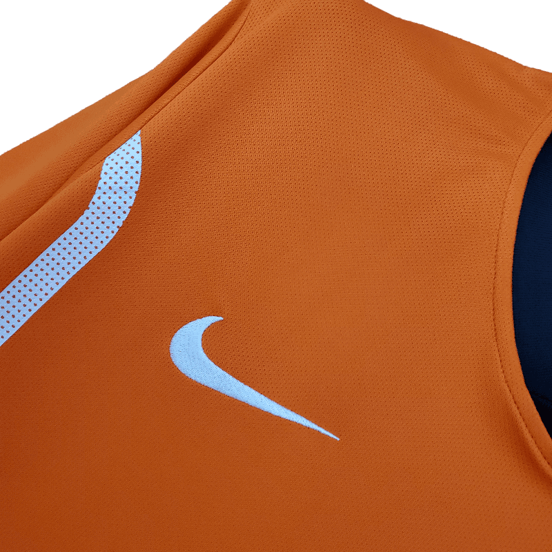 The Netherlands 2010 Home Jersey is a legendary piece of football history, featuring the traditional bright orange design with subtle white and black detailing. This jersey was worn during the 2010 FIFA World Cup, where the Dutch national team made a historic run to the final, showcasing their signature attacking football.